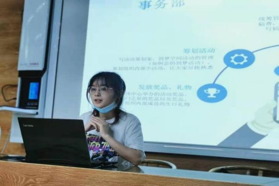 随后,计信公司全媒体中心主席刘欣雨与学员们分享了计信公司宣传工作队伍建设的情况。她以计信公司宣传队伍中各部门的工作职责、现有的工作体系,以及分工与合作情况为例,强调了部门联系的重要性。同时她以评选季度之星、部员庆生等做法为案例,分享了如何提升员工干部们凝聚力。