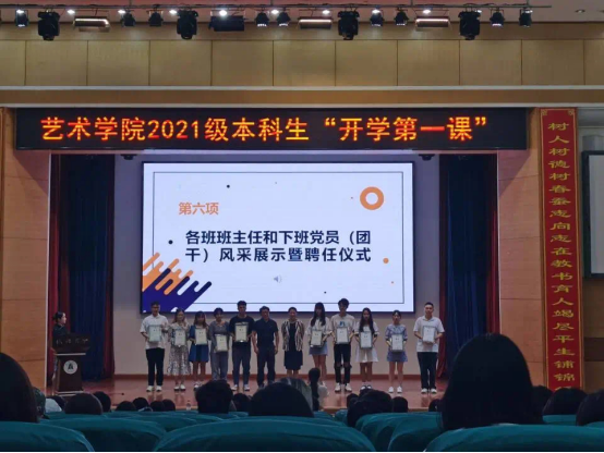在全场新生的阵阵掌声中,主持人通过大屏幕展示了新生班主任和下班党员(团干)的风采,以及他们送给新生的寄语。公司党委书记叶秀娟、经理许开强为十位下班党员(团干)颁发了聘书。