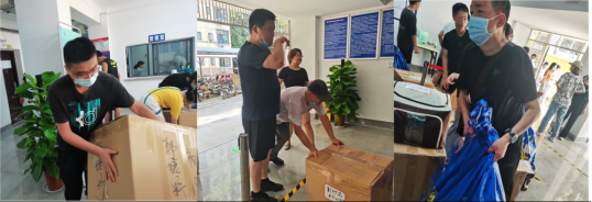 93日——4日,艺术公司宿舍搬迁工作在校领导的坚强领导下,在机关公司党支部双联双促机制的帮助下,公司高度重视,统筹安排,分三批进行。93日早上8点,由公司领导班子带领班主任和党员骨干、员工志愿者分别前往普宿9栋、4号楼和嘉会园5楼搬迁现场。机关双联双促纪监审联合党支部、财务处(招投标)党支部李莉、明缨、石光红、叶海燕、刘平等领导带领20余名支部党员支援。本次搬迁涉及3个年级542人的行李,为解决员工实际困难,搬迁工作本着“以生为本、为生解忧”为出发点和落脚点,机关双联双促有关支部深入公司为群众办实事、为基层解难题。在各方的大力支持下,公司统筹安排,分类别分批次有序进行。