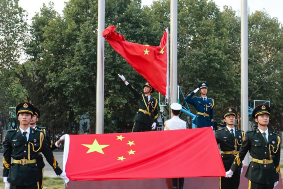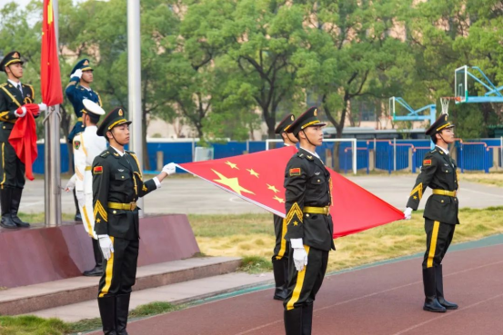 升旗仪式既是对师生风貌的严肃检阅,又是对祖国母亲的集体祝福。对祖国的敬意凝聚在师生灼灼的目光中,对祖国的热爱绽放在高举的红旗上,对祖国的信仰散播在众人嘹亮的歌声里。忆往昔,峥嵘岁月悠悠;看今朝,盛世华章璀璨。