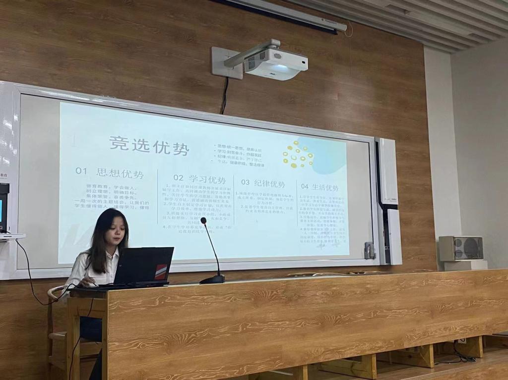 20、21级各班级代表从班级凝聚力、思想建设、学风室风建设、综合能力拓展、特色活动等五方面,对班级建设成果进行了全方位展示,相互交流班级建设心得,并向在座的各位22级班长传授经验。