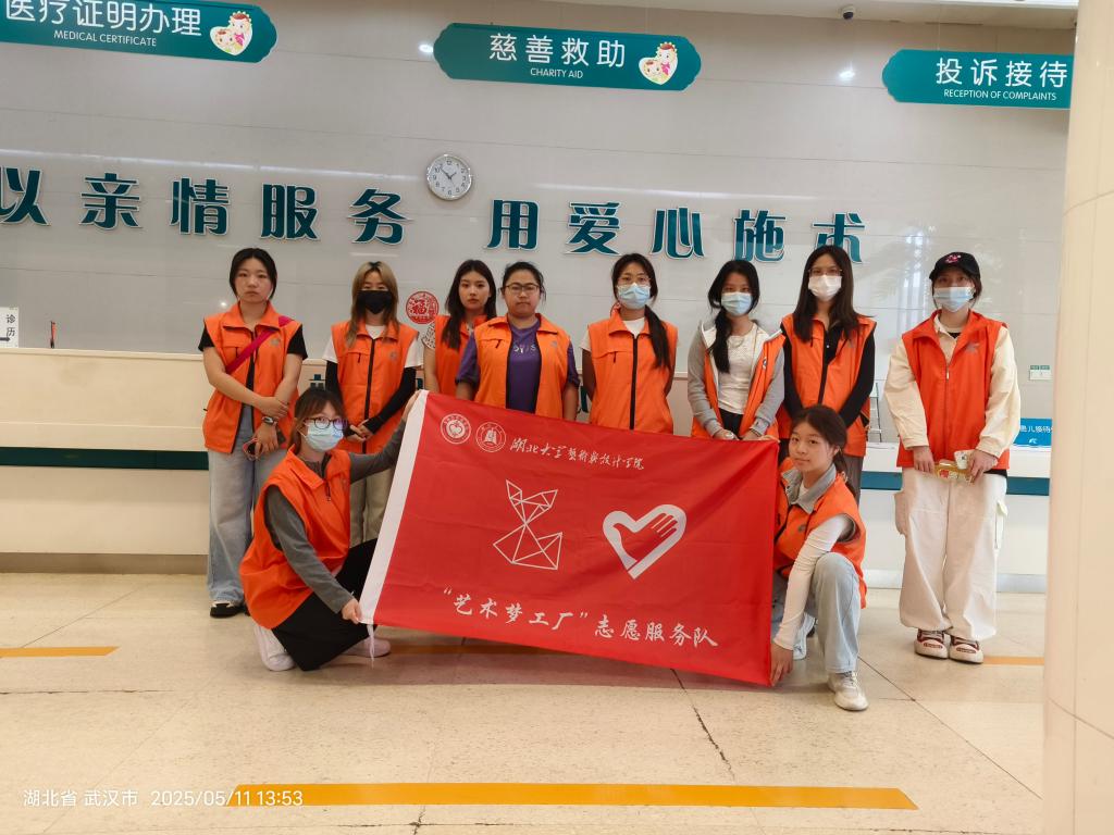 5月11日,武汉儿童医院门诊大厅内,一团小组开展为期一天的导诊志愿服务,在服务实践中为专业学习激发灵感。团员们身着统一志愿者服装,分赴门诊大厅、各楼层分诊台、电梯口及检查科室周边等核心区域,充分发挥专业特长,将设计思维融入志愿服务全过程。