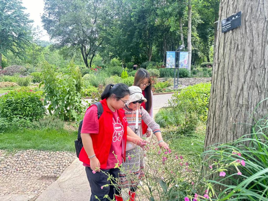 5月13日,二团小组有幸跟着粮道街道残联一同前往武汉植物园。活动中,团员们以1v1的形式协助盲人朋友游览园区,深入观察和记录了他们在行动与观赏过程中面临的痛点。首先,盲人在行进时普遍依赖触觉和听觉,但园区内的无障碍设施仍有不足,如部分坡道过陡、盲道被障碍物阻断等问题,导致行动不便。其次,在观赏环节,尽管团员们通过语言描述植物特征,但缺乏触觉体验(如触摸叶片、花朵)和嗅觉引导(如香草植物的气味),使得盲人难以全面感受自然之美。此外,盲人对环境变化的敏感度较高,嘈杂的背景音和人群拥挤容易引发不安。通过此次活动,团员们不仅深刻体会到盲人群体的特殊需求,也为未来设计更人性化的无障碍设施和导览服务提供了宝贵参考。此次志愿行动不仅是一次助残实践,更是一次深刻的社会观察与反思;既践行了“设计向善”的专业理念,更让团员深刻理解无障碍设计的核心是“感知代偿”。