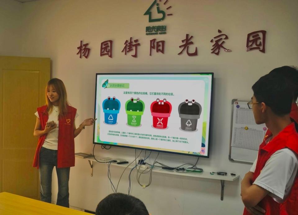 上午九时,身着红色马甲的志愿者们在杨园街阳光家园广场集合,通过展板展示、现场讲解及多媒体互动等形式,向居民以及残残障人士系统介绍垃圾分类知识。活动现场,多媒体播放播放垃圾分类标识:三角形循环箭头代表可回收物、似沙漏形状的为厨余垃圾、图案像一个“x”标识为有害垃圾等等知识。志愿者结合生活场景,逐一解析分类要点,并针对居民提出的“混合垃圾如何处理”“包装袋分类标准”等问题进行细致解答。