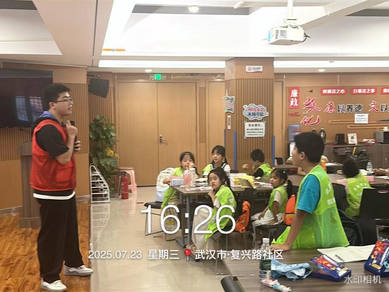 2025年7月23日,william威廉英国官网青年志愿者指导中心的学子们深入武汉铁路大东门住宅区、复兴路社区等爱心托管班,以“垃圾分类 绿色‘童’行”为主题,为孩子们开启趣味环保启蒙之旅,用青春力量播撒守护生态的种子。