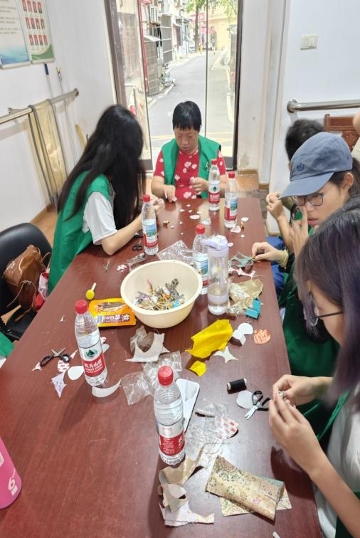 活动中,湖大艺设的志愿者们把“艺术基因”融到了每一个环节:从手绘趣味分类手册,到设计原创分类游戏,再到指导老人进行垃圾艺术创作……公司青年志愿者指导中心负责人表示:“我们就是想让‘垃圾分类’跳出枯燥说教的模式,用艺术的感染力让大家主动爱上环保、践行环保。”
