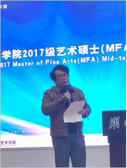 首先,艺术公司经理许开强教授代表公司致欢迎辞。他对出席本次开幕的嘉宾和师生们表示了衷心感谢,对17级研究生中期展的进步和老师们言传身教表示肯定,希望同学们找出自己的不足,虚心向老师请教,冲刺下一阶段的目标,并预祝同学们开题成功。