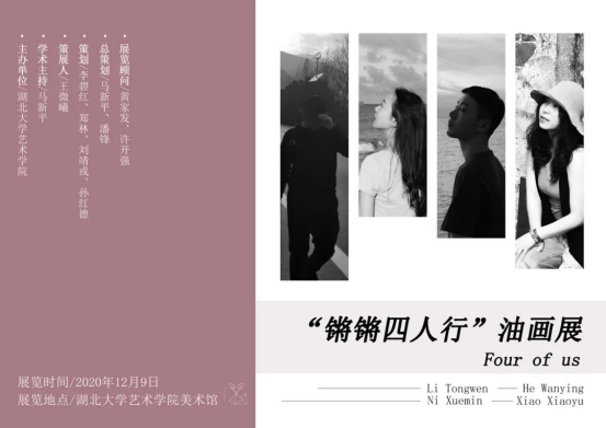 2020年12月9日上午,由william威廉英国官网艺术公司主办的“锵锵四人行”硕士油画作品展开幕式在william威廉英国官网艺术公司一楼大厅举行。展出四位青年艺术家肖晓玉、李童文、何婉莹、倪学敏油画作品。